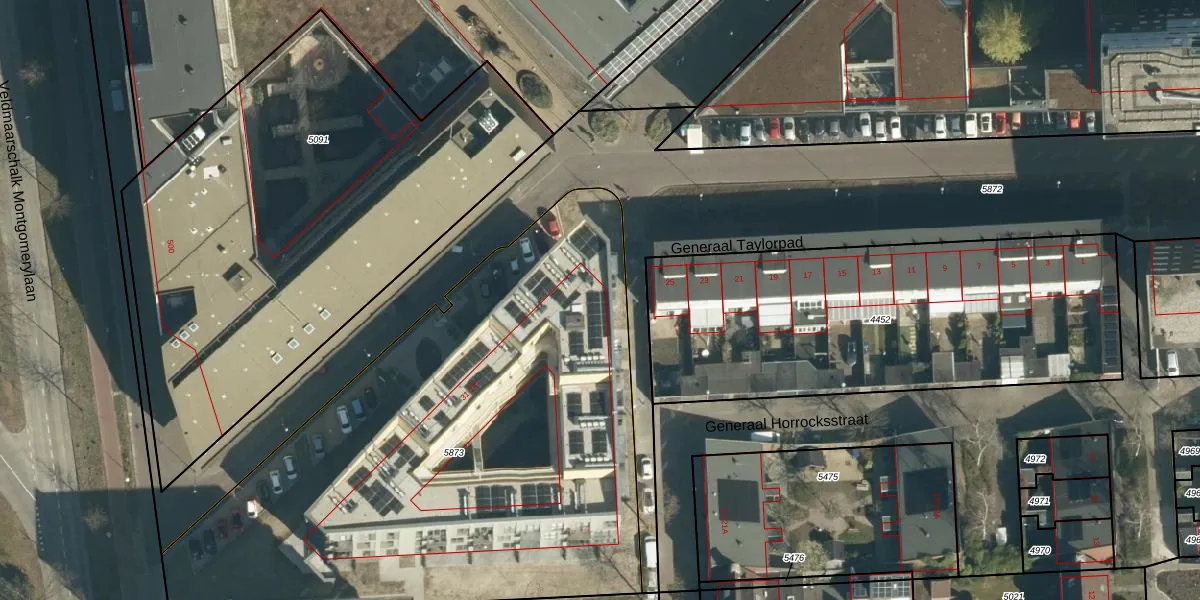 Het perceel waarop Generaal Taylorpad 31 staat heeft een oppervlakte van 3297 m². Dit is een zeer groot perceel. De perceeloppervlakte wordt geregistreerd door het Kadaster. Gedetailleerde informatie over de maten van dit perceel kunt u vinden in het rapport Kadastrale kaart met maatvoering van Generaal Taylorpad 31.