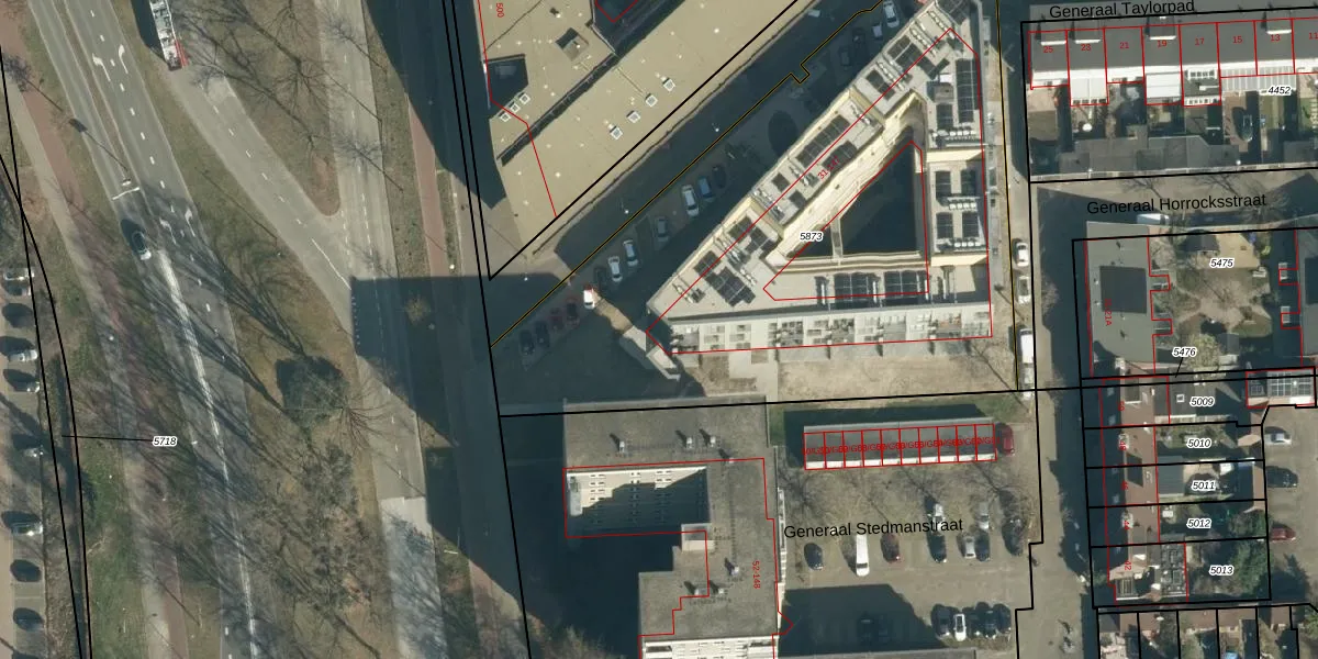 Generaal Taylorpad 45 is gelegen op kadastraal perceel WSL01L5873. Deze kadastrale aanduiding is uniek en wordt gebruikt door het Kadaster om eigendomsrechten en andere zakelijke rechten vast te leggen. Het perceel maakt onderdeel uit van de kadastrale gemeente Woensel.