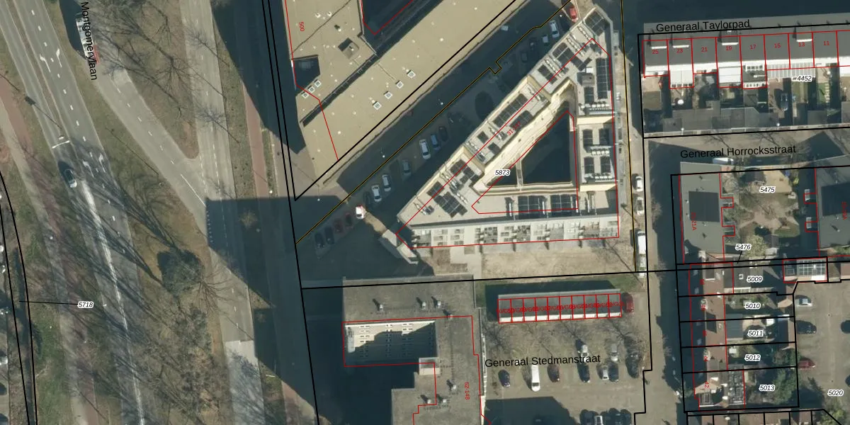 Het perceel waarop Generaal Taylorpad 47 staat heeft een oppervlakte van 3297 m². Dit is een zeer groot perceel. De perceeloppervlakte wordt geregistreerd door het Kadaster. Gedetailleerde informatie over de maten van dit perceel kunt u vinden in het rapport Kadastrale kaart met maatvoering van Generaal Taylorpad 47.
