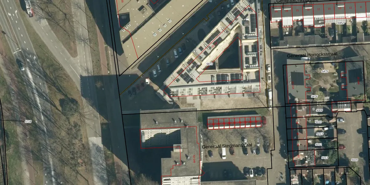 Generaal Taylorpad 71 is gelegen op kadastraal perceel WSL01L5873. Deze kadastrale aanduiding is uniek en wordt gebruikt door het Kadaster om eigendomsrechten en andere zakelijke rechten vast te leggen. Het perceel maakt onderdeel uit van de kadastrale gemeente Woensel.
