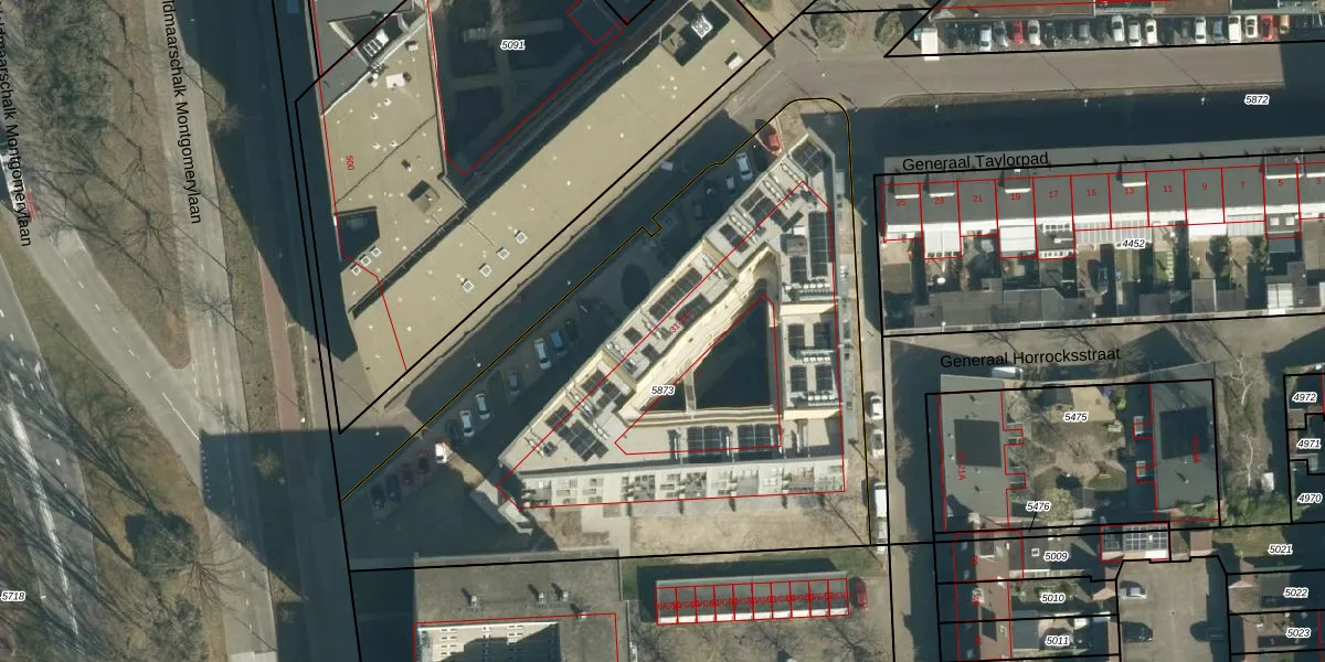 Het perceel waarop Generaal Taylorpad 83 staat heeft een oppervlakte van 3297 m². Dit is een zeer groot perceel. De perceeloppervlakte wordt geregistreerd door het Kadaster. Gedetailleerde informatie over de maten van dit perceel kunt u vinden in het rapport Kadastrale kaart met maatvoering van Generaal Taylorpad 83.