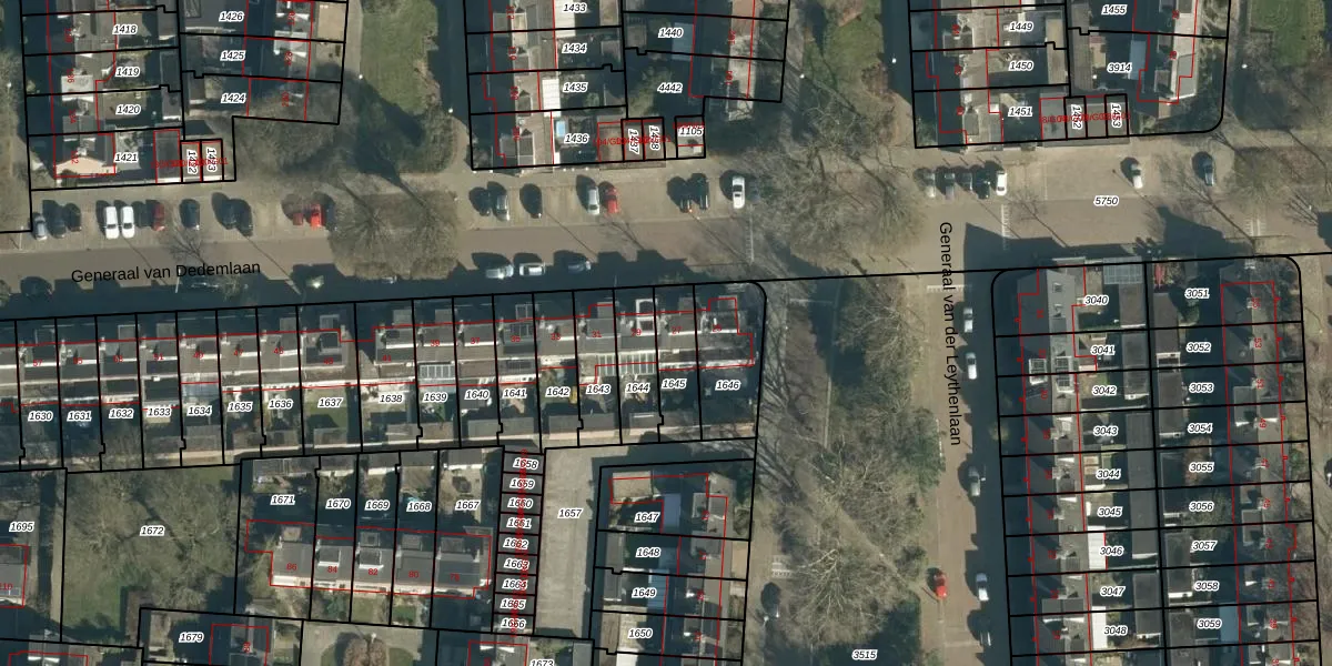 Het perceel waarop Generaal van Dedemlaan 27 staat heeft een oppervlakte van 142 m². Dit is een middelgroot perceel. De perceeloppervlakte wordt geregistreerd door het Kadaster. Gedetailleerde informatie over de maten van dit perceel kunt u vinden in het rapport Kadastrale kaart met maatvoering van Generaal van Dedemlaan 27.