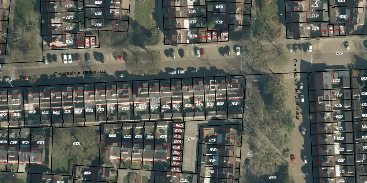 Het perceel waarop Generaal van Dedemlaan 33 staat heeft een oppervlakte van 142 m². Dit is een middelgroot perceel. De perceeloppervlakte wordt geregistreerd door het Kadaster. Gedetailleerde informatie over de maten van dit perceel kunt u vinden in het rapport Kadastrale kaart met maatvoering van Generaal van Dedemlaan 33.