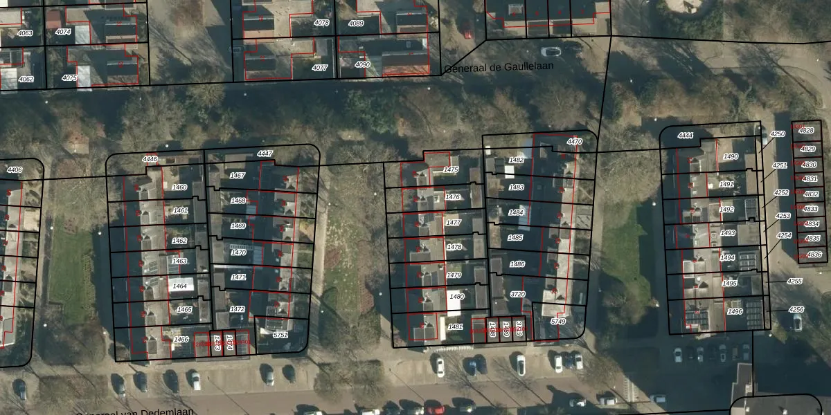 Generaal van Dedemlaan 38 is gelegen op kadastraal perceel WSL01L1476. Deze kadastrale aanduiding is uniek en wordt gebruikt door het Kadaster om eigendomsrechten en andere zakelijke rechten vast te leggen. Het perceel maakt onderdeel uit van de kadastrale gemeente Woensel.
