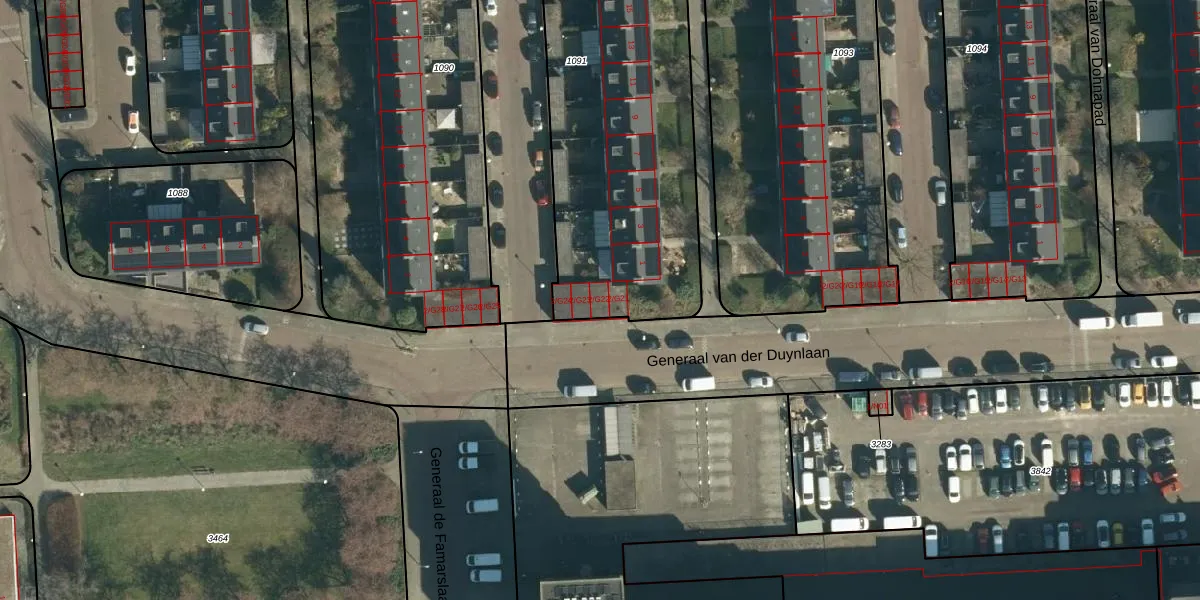 Het perceel waarop Generaal van der Duynlaan 2-G22 staat heeft een oppervlakte van 1750 m². Dit is een zeer groot perceel. De perceeloppervlakte wordt geregistreerd door het Kadaster. Gedetailleerde informatie over de maten van dit perceel kunt u vinden in het rapport Kadastrale kaart met maatvoering van Generaal van der Duynlaan 2-G22.