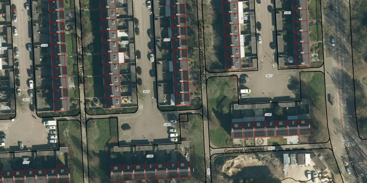 Het perceel waarop Generaal van Drimbornpad 22 staat heeft een oppervlakte van 1966 m². Dit is een zeer groot perceel. De perceeloppervlakte wordt geregistreerd door het Kadaster. Gedetailleerde informatie over de maten van dit perceel kunt u vinden in het rapport Kadastrale kaart met maatvoering van Generaal van Drimbornpad 22.
