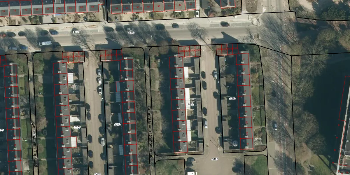 Generaal van Drimbornpad 5 is gelegen op kadastraal perceel WSL01L1082. Deze kadastrale aanduiding is uniek en wordt gebruikt door het Kadaster om eigendomsrechten en andere zakelijke rechten vast te leggen. Het perceel maakt onderdeel uit van de kadastrale gemeente Woensel.