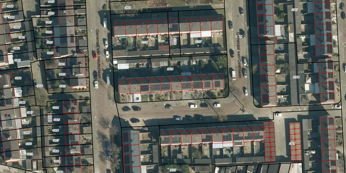 Het perceel waarop Generaal van Geenlaan 11 staat heeft een oppervlakte van 1653 m². Dit is een zeer groot perceel. De perceeloppervlakte wordt geregistreerd door het Kadaster. Gedetailleerde informatie over de maten van dit perceel kunt u vinden in het rapport Kadastrale kaart met maatvoering van Generaal van Geenlaan 11.
