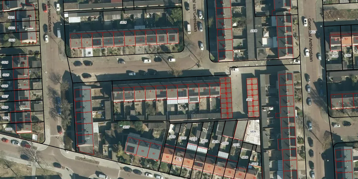 Het perceel waarop Generaal van Geenlaan 14 staat heeft een oppervlakte van 3658 m². Dit is een zeer groot perceel. De perceeloppervlakte wordt geregistreerd door het Kadaster. Gedetailleerde informatie over de maten van dit perceel kunt u vinden in het rapport Kadastrale kaart met maatvoering van Generaal van Geenlaan 14.