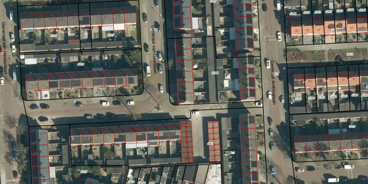Generaal van Geenlaan 24 is gelegen op kadastraal perceel WSL01L2308. Deze kadastrale aanduiding is uniek en wordt gebruikt door het Kadaster om eigendomsrechten en andere zakelijke rechten vast te leggen. Het perceel maakt onderdeel uit van de kadastrale gemeente Woensel.