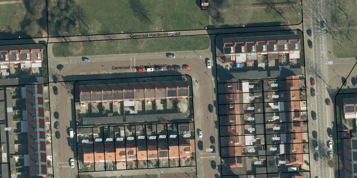 Generaal van Haersoltelaan 21 is gelegen op kadastraal perceel WSL01L1048. Deze kadastrale aanduiding is uniek en wordt gebruikt door het Kadaster om eigendomsrechten en andere zakelijke rechten vast te leggen. Het perceel maakt onderdeel uit van de kadastrale gemeente Woensel.