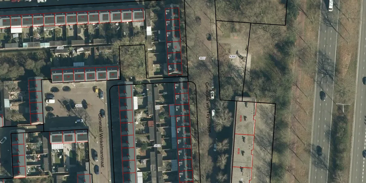 Generaal van Teynstraat 19 is gelegen op kadastraal perceel WSL01L1811. Deze kadastrale aanduiding is uniek en wordt gebruikt door het Kadaster om eigendomsrechten en andere zakelijke rechten vast te leggen. Het perceel maakt onderdeel uit van de kadastrale gemeente Woensel.