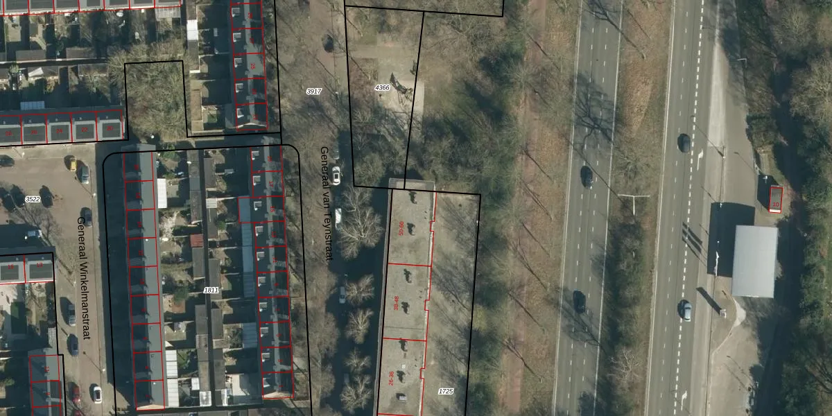 Generaal van Teynstraat 56 is gelegen op kadastraal perceel WSL01L1725. Deze kadastrale aanduiding is uniek en wordt gebruikt door het Kadaster om eigendomsrechten en andere zakelijke rechten vast te leggen. Het perceel maakt onderdeel uit van de kadastrale gemeente Woensel.