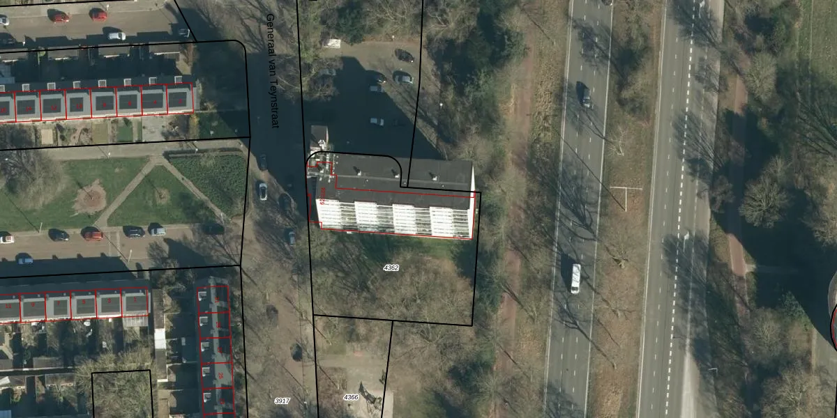 Generaal van Teynstraat 82 is gelegen op kadastraal perceel WSL01L4362. Deze kadastrale aanduiding is uniek en wordt gebruikt door het Kadaster om eigendomsrechten en andere zakelijke rechten vast te leggen. Het perceel maakt onderdeel uit van de kadastrale gemeente Woensel.