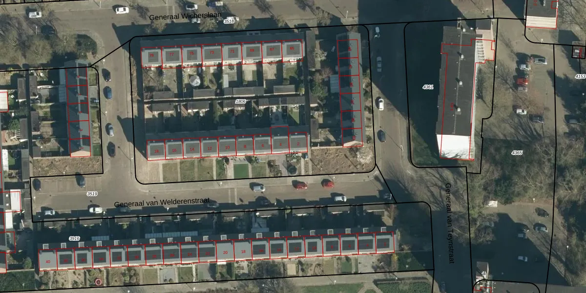 Het perceel waarop Generaal van Welderenstraat 2 staat heeft een oppervlakte van 4131 m². Dit is een zeer groot perceel. De perceeloppervlakte wordt geregistreerd door het Kadaster. Gedetailleerde informatie over de maten van dit perceel kunt u vinden in het rapport Kadastrale kaart met maatvoering van Generaal van Welderenstraat 2.