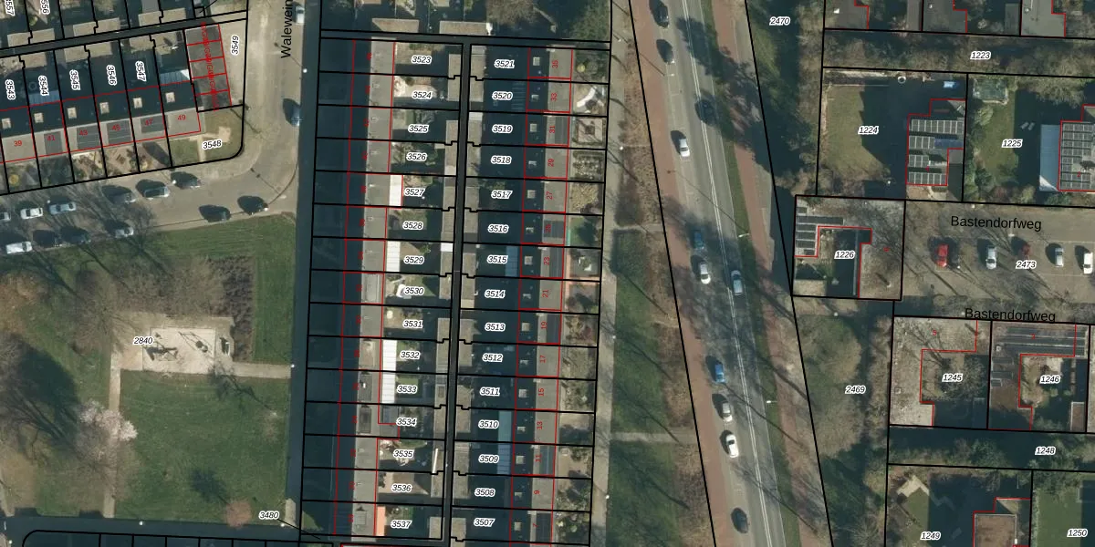 Gebruik de zoekbalk of klik op een perceel voor informatie over de adressen binnen dit perceel.
