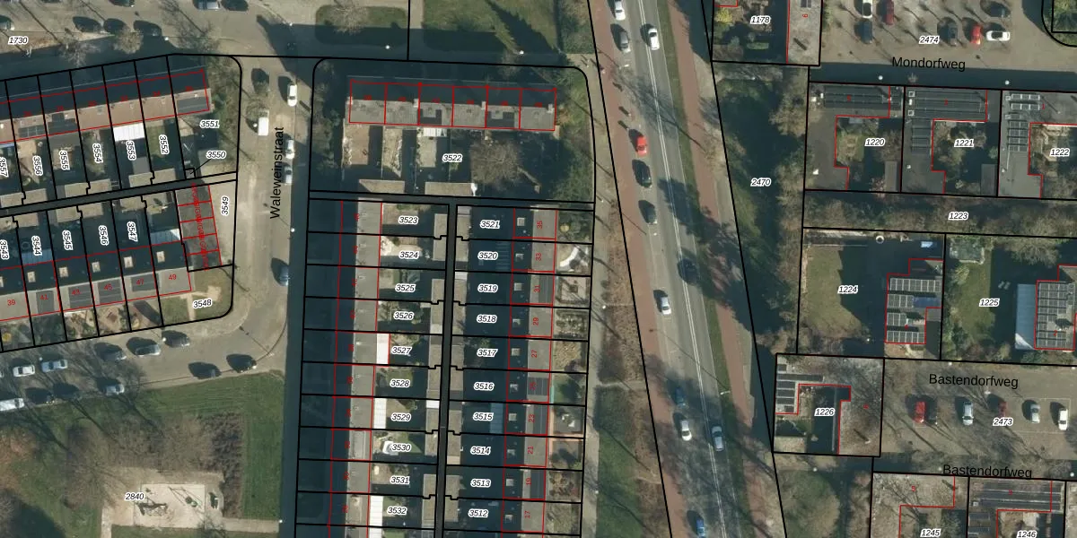 Genovevalaan 33 is gelegen op kadastraal perceel WSL01P3520. Deze kadastrale aanduiding is uniek en wordt gebruikt door het Kadaster om eigendomsrechten en andere zakelijke rechten vast te leggen. Het perceel maakt onderdeel uit van de kadastrale gemeente Woensel.
