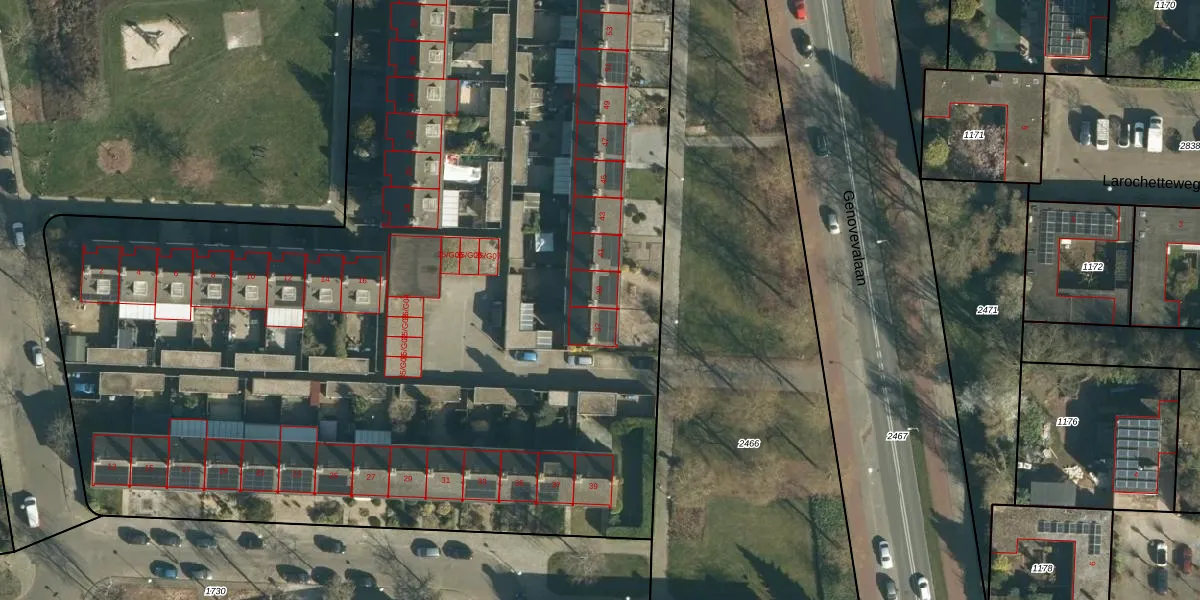 Genovevalaan 39 is gelegen op kadastraal perceel WSL01P823. Deze kadastrale aanduiding is uniek en wordt gebruikt door het Kadaster om eigendomsrechten en andere zakelijke rechten vast te leggen. Het perceel maakt onderdeel uit van de kadastrale gemeente Woensel.
