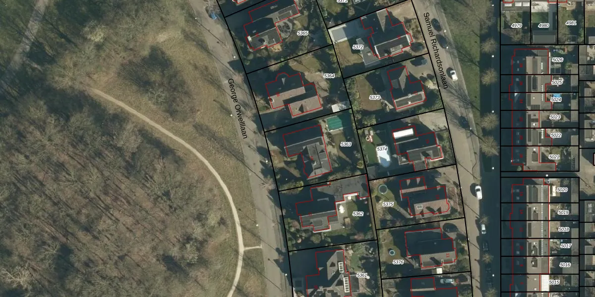 George Orwelllaan 14 is gelegen op kadastraal perceel WSL01W5363. Deze kadastrale aanduiding is uniek en wordt gebruikt door het Kadaster om eigendomsrechten en andere zakelijke rechten vast te leggen. Het perceel maakt onderdeel uit van de kadastrale gemeente Woensel.