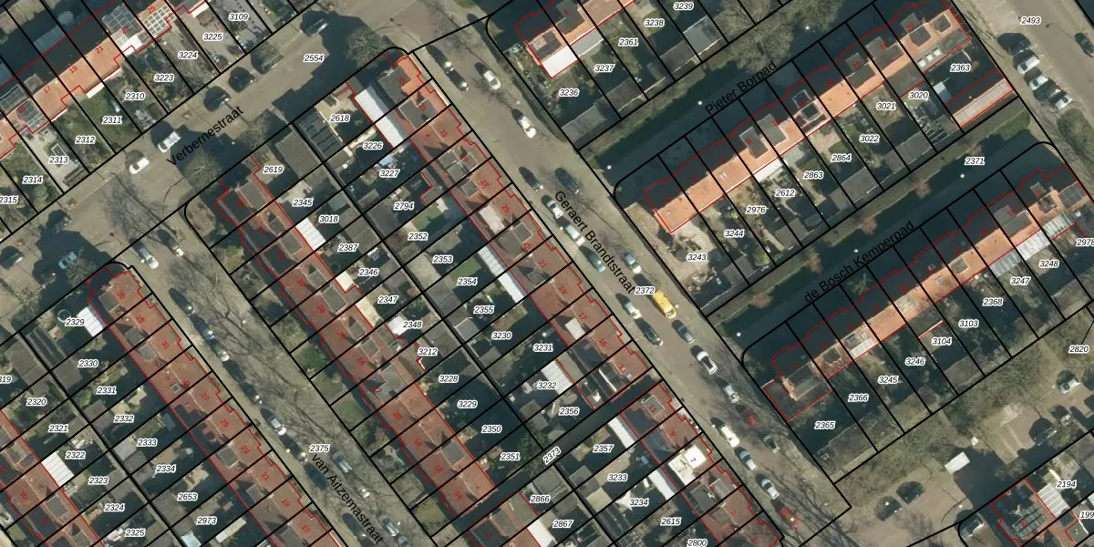 Geraert Brandtstraat 21 is gelegen op kadastraal perceel WSL01P2355. Deze kadastrale aanduiding is uniek en wordt gebruikt door het Kadaster om eigendomsrechten en andere zakelijke rechten vast te leggen. Het perceel maakt onderdeel uit van de kadastrale gemeente Woensel.