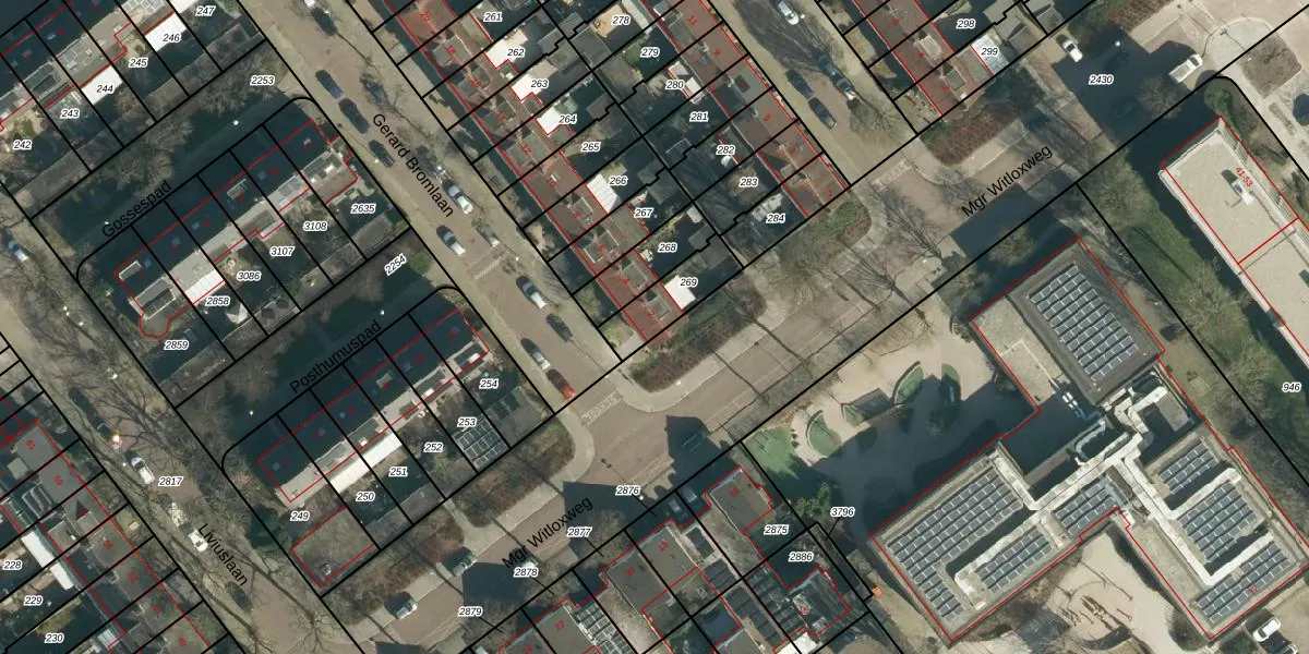 Gerard Bromlaan 2 is gelegen op kadastraal perceel WSL01P269. Deze kadastrale aanduiding is uniek en wordt gebruikt door het Kadaster om eigendomsrechten en andere zakelijke rechten vast te leggen. Het perceel maakt onderdeel uit van de kadastrale gemeente Woensel.