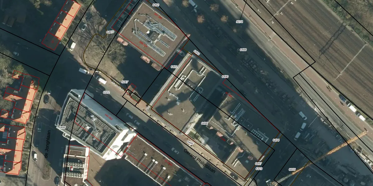 Gerard Philipslaan 190 is gelegen op kadastraal perceel STR03C6496. Deze kadastrale aanduiding is uniek en wordt gebruikt door het Kadaster om eigendomsrechten en andere zakelijke rechten vast te leggen. Het perceel maakt onderdeel uit van de kadastrale gemeente Strijp.