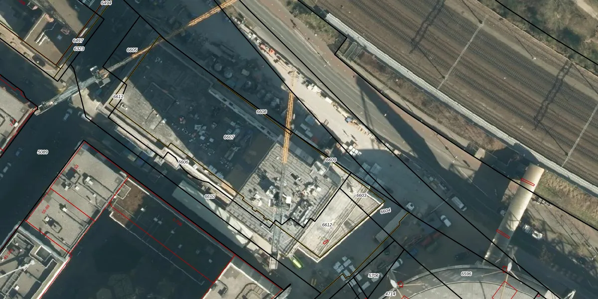 Het perceel waarop het adres ligt is STR03-C-6607. De afkorting 'STR03' staat voor kadastrale gemeente Strijp. De gemiddelde perceeloppervlakte in de kadastrale gemeente Strijp is 1881,11 m². Dit perceel is met zijn 2097 m² dus groter dan gemiddeld. De grootste perceeloppervlakte in de kadastrale gemeente is 1,87 km². De kleinste oppervlakte bedraagt 0 m². Op het perceel zijn 405 adressen aanwezig. In de Basisregistratie Kadaster (BRK) werden de grenzen van het perceel geregistreerd op 08-12-2022.