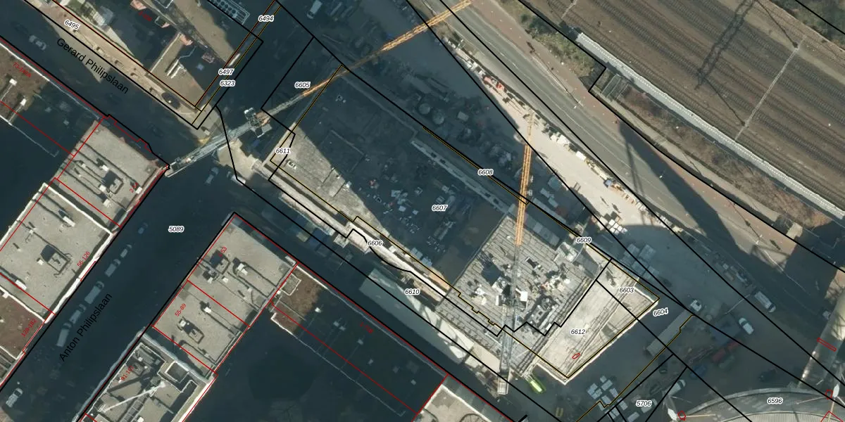 Het perceel waarop het adres ligt is STR03-C-6607. De afkorting 'STR03' staat voor kadastrale gemeente Strijp. Het perceel is met 2097 m² relatief groot. Het gemiddelde ligt in de kadastrale gemeente Strijp op 1881,11 m². De grootste perceeloppervlakte in de kadastrale gemeente is 1,87 km². De kleinste oppervlakte bedraagt 0 m². Op het perceel zijn 405 adressen aanwezig. In de Basisregistratie Kadaster (BRK) werden de grenzen van het perceel geregistreerd op 08-12-2022.
