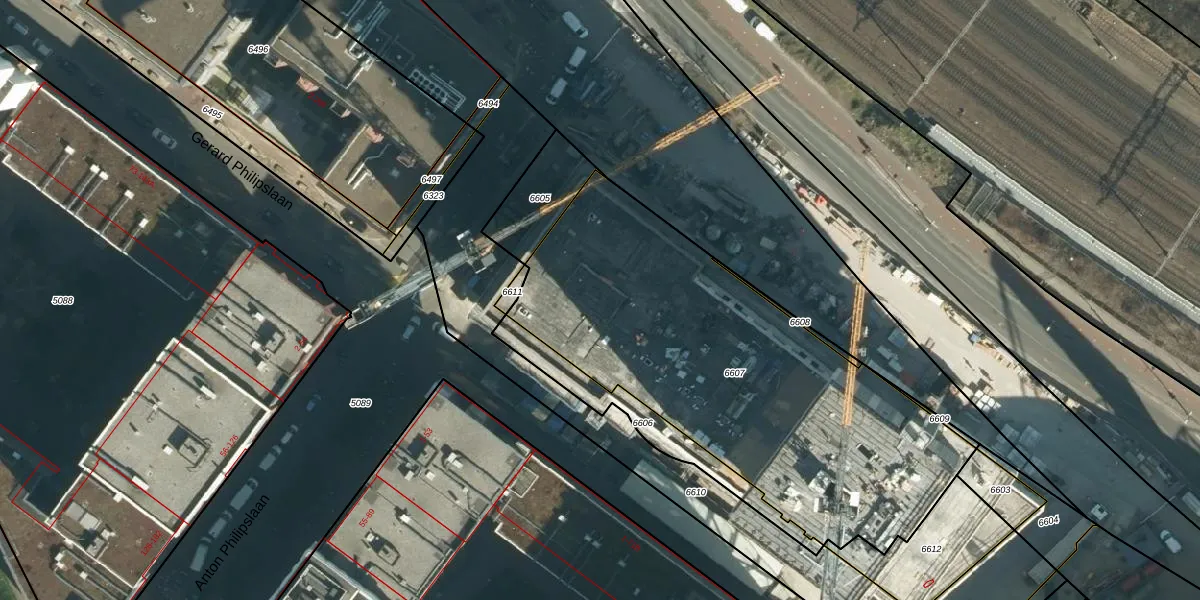 Het perceel waarop het adres ligt is STR03-C-6607. De afkorting 'STR03' staat voor kadastrale gemeente Strijp. Het perceel is met 2097 m² relatief groot. Het gemiddelde ligt in de kadastrale gemeente Strijp op 1881,11 m². De grootste perceeloppervlakte in de kadastrale gemeente is 1,87 km². De kleinste oppervlakte bedraagt 0 m². Er zijn 405 adressen aanwezig op het perceel. De huidige grenzen van het perceel zijn digitaal in de Basisregistratie Kadaster (BRK) geregistreerd op 08-12-2022.