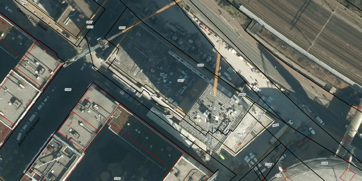 Het perceel waarop het adres ligt is STR03-C-6607. De afkorting 'STR03' staat voor kadastrale gemeente Strijp. Het perceel is met 2097 m² relatief groot. Het gemiddelde ligt in de kadastrale gemeente Strijp op 1880,26 m². De grootste perceeloppervlakte in de kadastrale gemeente is 1,87 km². De kleinste oppervlakte bedraagt 0 m². Er zijn 405 adressen aanwezig op het perceel. In de Basisregistratie Kadaster (BRK) werden de grenzen van het perceel geregistreerd op 08-12-2022.