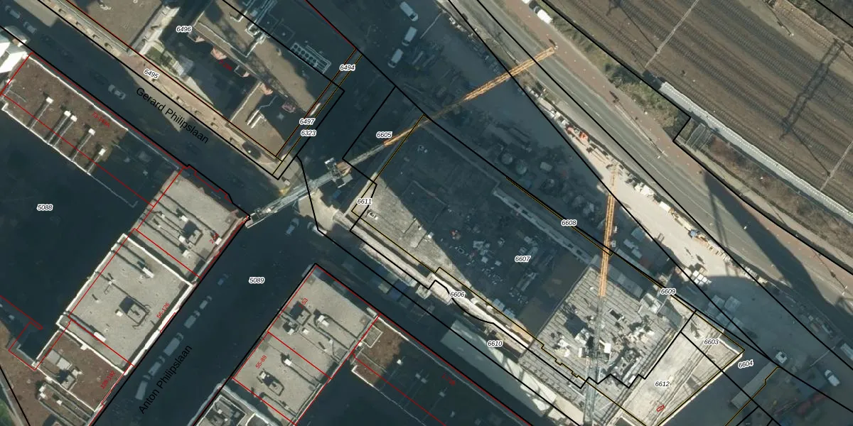 Het perceel waarop het adres ligt is STR03-C-6607. De afkorting 'STR03' staat voor kadastrale gemeente Strijp. Het perceel is met 2097 m² relatief groot. Het gemiddelde ligt in de kadastrale gemeente Strijp op 1880,43 m². Het grootste perceel in de kadastrale gemeente is 1,87 km². Het kleinste perceel heeft een oppervlakte van 0 m². Op het perceel liggen in totaal 405 adressen. In de Basisregistratie Kadaster (BRK) werden de grenzen van het perceel geregistreerd op 08-12-2022.