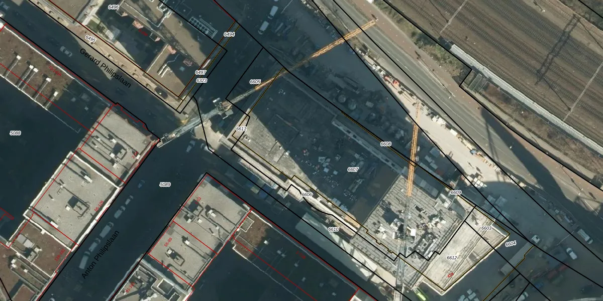 Het perceel waarop het adres ligt is STR03-C-6607. De afkorting 'STR03' staat voor kadastrale gemeente Strijp. Het perceel is met 2097 m² relatief groot. Het gemiddelde ligt in de kadastrale gemeente Strijp op 1880,43 m². Het grootste perceel in de kadastrale gemeente is 1,87 km². Het kleinste perceel heeft een oppervlakte van 0 m². Er zijn 405 adressen aanwezig op het perceel. De huidige grenzen van het perceel zijn digitaal in de Basisregistratie Kadaster (BRK) geregistreerd op 08-12-2022.