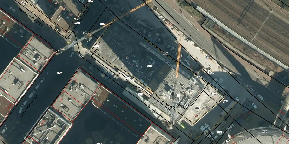 Het perceel waarop het adres ligt is STR03-C-6607. De afkorting 'STR03' staat voor kadastrale gemeente Strijp. Het perceel is met 2097 m² relatief groot. Het gemiddelde ligt in de kadastrale gemeente Strijp op 1881,11 m². Het grootste perceel in de kadastrale gemeente is 1,87 km². Het kleinste perceel heeft een oppervlakte van 0 m². Op het perceel zijn 405 adressen aanwezig. De huidige grenzen van het perceel zijn digitaal in de Basisregistratie Kadaster (BRK) geregistreerd op 08-12-2022.