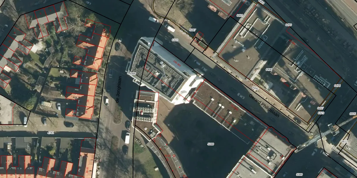 Gerard Philipslaan 233 is gelegen op kadastraal perceel STR03C5088. Deze kadastrale aanduiding is uniek en wordt gebruikt door het Kadaster om eigendomsrechten en andere zakelijke rechten vast te leggen. Het perceel maakt onderdeel uit van de kadastrale gemeente Strijp.
