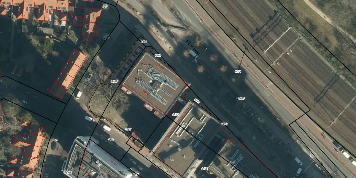 Het perceel waarop het adres ligt is STR03-C-6491. De afkorting 'STR03' staat voor kadastrale gemeente Strijp. De gemiddelde perceeloppervlakte in de kadastrale gemeente Strijp is 1879,07 m². Dit perceel is met zijn 2374 m² dus groter dan gemiddeld. Het grootste perceel in de kadastrale gemeente is 1,87 km². Het kleinste perceel heeft een oppervlakte van 0 m². Op het perceel zijn 134 adressen aanwezig. De huidige grenzen van het perceel zijn digitaal in de Basisregistratie Kadaster (BRK) geregistreerd op 25-02-2022.