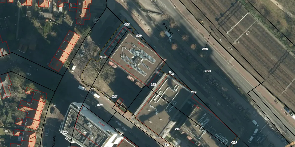 Het perceel waarop het adres ligt is STR03-C-6491. De afkorting 'STR03' staat voor kadastrale gemeente Strijp. De gemiddelde perceeloppervlakte in de kadastrale gemeente Strijp is 1879,07 m². Dit perceel is met zijn 2374 m² dus groter dan gemiddeld. Het grootste perceel in de kadastrale gemeente is 1,87 km². Het kleinste perceel heeft een oppervlakte van 0 m². Op het perceel zijn 134 adressen aanwezig. De laatste wijziging in het de Basisregistratie Kadaster (BRK) was op 25-02-2022.