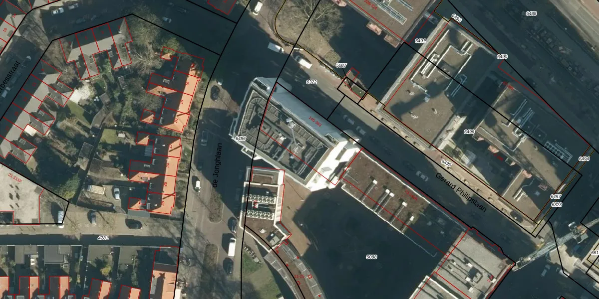 Gerard Philipslaan 245 is gelegen op kadastraal perceel STR03C5088. Deze kadastrale aanduiding is uniek en wordt gebruikt door het Kadaster om eigendomsrechten en andere zakelijke rechten vast te leggen. Het perceel maakt onderdeel uit van de kadastrale gemeente Strijp.