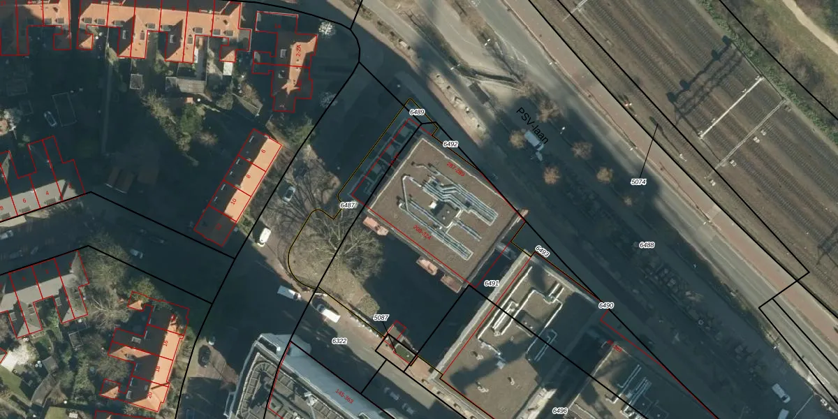 Het perceel waarop het adres ligt is STR03-C-6491. De afkorting 'STR03' staat voor kadastrale gemeente Strijp. De gemiddelde perceeloppervlakte in de kadastrale gemeente Strijp is 1879,07 m². Dit perceel is met zijn 2374 m² dus groter dan gemiddeld. Het grootste perceel in de kadastrale gemeente is 1,87 km². Het kleinste perceel heeft een oppervlakte van 0 m². Op het perceel zijn 134 adressen aanwezig. De huidige grenzen van het perceel zijn digitaal in de Basisregistratie Kadaster (BRK) geregistreerd op 25-02-2022.