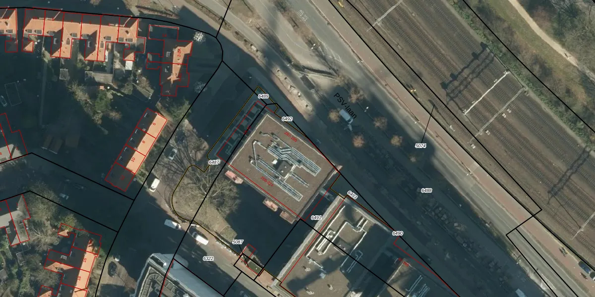 Het perceel waarop het adres ligt is STR03-C-6491. De afkorting 'STR03' staat voor kadastrale gemeente Strijp. De gemiddelde perceeloppervlakte in de kadastrale gemeente Strijp is 1880,94 m². Dit perceel is met zijn 2374 m² dus groter dan gemiddeld. Het grootste perceel in de kadastrale gemeente is 1,87 km². Het kleinste perceel heeft een oppervlakte van 0 m². Op het perceel liggen in totaal 134 adressen. De huidige grenzen van het perceel zijn digitaal in de Basisregistratie Kadaster (BRK) geregistreerd op 25-02-2022.