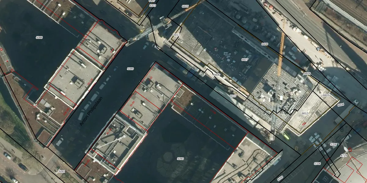 Het perceel waarop het adres ligt is STR03-C-5090. De afkorting 'STR03' staat voor kadastrale gemeente Strijp. Het perceel is met 5868 m² relatief groot. Het gemiddelde ligt in de kadastrale gemeente Strijp op 1879,07 m². Het grootste perceel in de kadastrale gemeente is 1,87 km². Het kleinste perceel heeft een oppervlakte van 0 m². Op het perceel liggen in totaal 256 adressen. In de Basisregistratie Kadaster (BRK) werden de grenzen van het perceel geregistreerd op 25-02-2008.