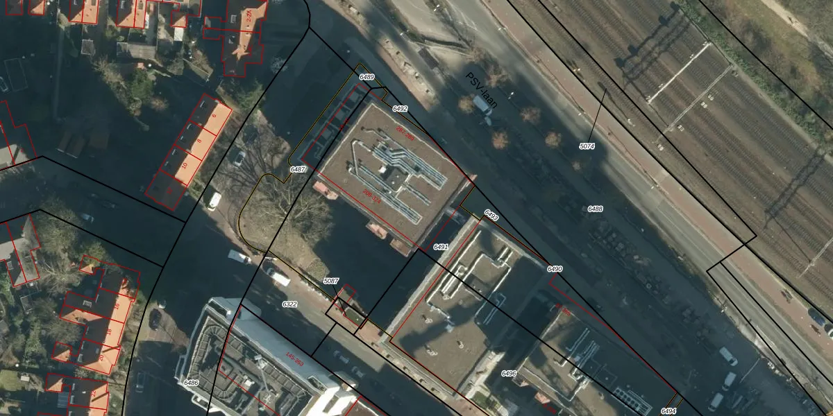 Het perceel waarop het adres ligt is STR03-C-6491. De afkorting 'STR03' staat voor kadastrale gemeente Strijp. De gemiddelde perceeloppervlakte in de kadastrale gemeente Strijp is 1879,24 m². Dit perceel is met zijn 2374 m² dus groter dan gemiddeld. Het grootste perceel in de kadastrale gemeente is 1,87 km². Het kleinste perceel heeft een oppervlakte van 0 m². Er zijn 134 adressen aanwezig op het perceel. De huidige grenzen van het perceel zijn digitaal in de Basisregistratie Kadaster (BRK) geregistreerd op 25-02-2022.