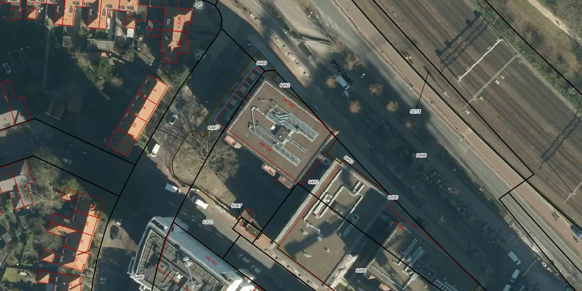 Het perceel waarop het adres ligt is STR03-C-6491. De afkorting 'STR03' staat voor kadastrale gemeente Strijp. De gemiddelde perceeloppervlakte in de kadastrale gemeente Strijp is 1879,07 m². Dit perceel is met zijn 2374 m² dus groter dan gemiddeld. Het grootste perceel in de kadastrale gemeente is 1,87 km². Het kleinste perceel heeft een oppervlakte van 0 m². Er zijn 134 adressen aanwezig op het perceel. De laatste wijziging in het de Basisregistratie Kadaster (BRK) was op 25-02-2022.