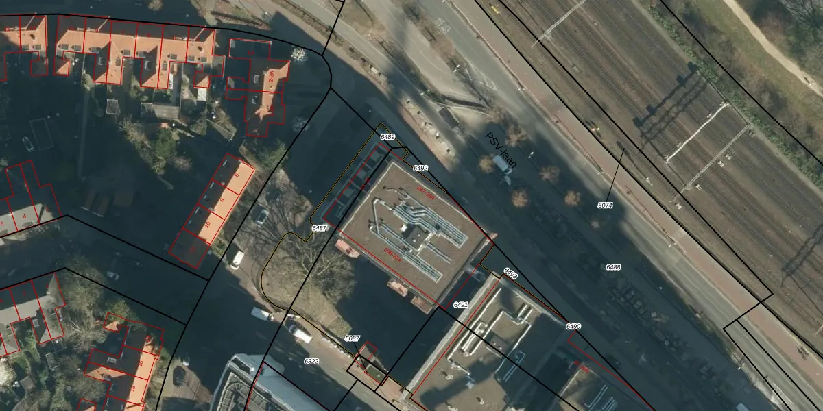 Het perceel waarop het adres ligt is STR03-C-6491. De afkorting 'STR03' staat voor kadastrale gemeente Strijp. De gemiddelde perceeloppervlakte in de kadastrale gemeente Strijp is 1879,07 m². Dit perceel is met zijn 2374 m² dus groter dan gemiddeld. Het grootste perceel in de kadastrale gemeente is 1,87 km². Het kleinste perceel heeft een oppervlakte van 0 m². Op het perceel zijn 134 adressen aanwezig. De huidige grenzen van het perceel zijn digitaal in de Basisregistratie Kadaster (BRK) geregistreerd op 25-02-2022.