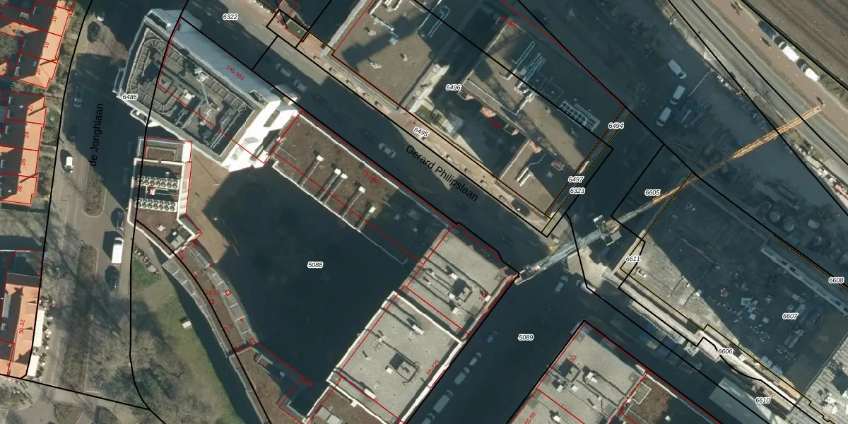 Gerard Philipslaan 77 is gelegen op kadastraal perceel STR03C5088. Deze kadastrale aanduiding is uniek en wordt gebruikt door het Kadaster om eigendomsrechten en andere zakelijke rechten vast te leggen. Het perceel maakt onderdeel uit van de kadastrale gemeente Strijp.