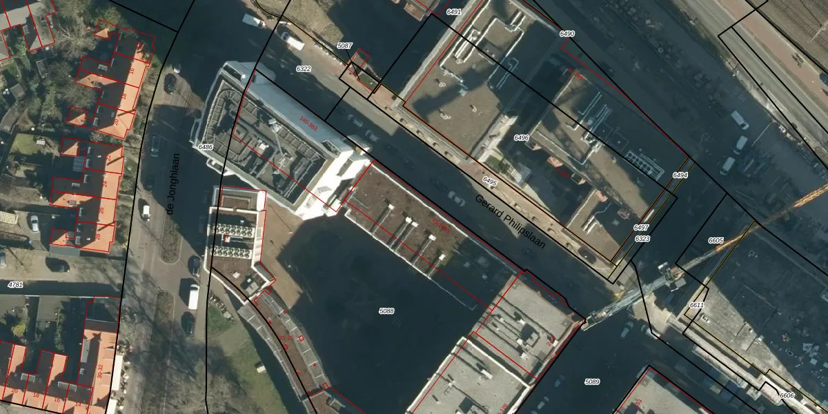 Gerard Philipslaan 97 is gelegen op kadastraal perceel STR03C5088. Deze kadastrale aanduiding is uniek en wordt gebruikt door het Kadaster om eigendomsrechten en andere zakelijke rechten vast te leggen. Het perceel maakt onderdeel uit van de kadastrale gemeente Strijp.