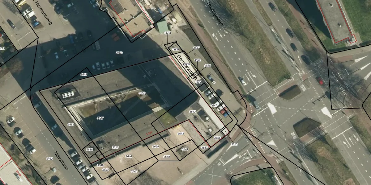 Het perceel waarop Gerretsonplein 82 staat heeft een oppervlakte van 1335 m². Dit is een zeer groot perceel. De perceeloppervlakte wordt geregistreerd door het Kadaster. Gedetailleerde informatie over de maten van dit perceel kunt u vinden in het rapport Kadastrale kaart met maatvoering van Gerretsonplein 82.