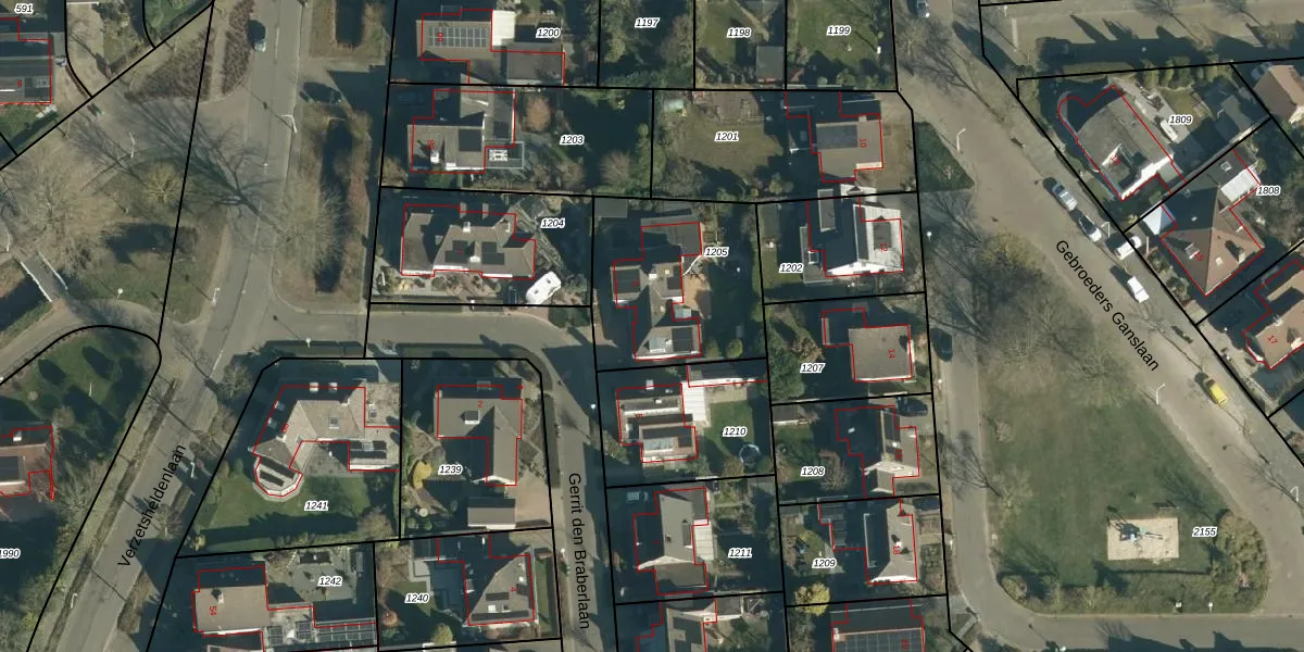 Het perceel waarop Gerrit den Braberlaan 3 staat heeft een oppervlakte van 655 m². Dit is een groot perceel. De perceeloppervlakte wordt geregistreerd door het Kadaster. Gedetailleerde informatie over de maten van dit perceel kunt u vinden in het rapport Kadastrale kaart met maatvoering van Gerrit den Braberlaan 3.