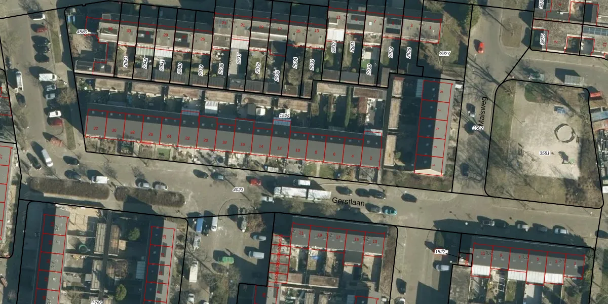 Het perceel waarop Gerstlaan 10 staat heeft een oppervlakte van 3603 m². Dit is een zeer groot perceel. De perceeloppervlakte wordt geregistreerd door het Kadaster. Gedetailleerde informatie over de maten van dit perceel kunt u vinden in het rapport Kadastrale kaart met maatvoering van Gerstlaan 10.