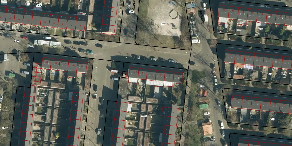 Het perceel waarop Gerstlaan 9 staat heeft een oppervlakte van 3248 m². Dit is een zeer groot perceel. De perceeloppervlakte wordt geregistreerd door het Kadaster. Gedetailleerde informatie over de maten van dit perceel kunt u vinden in het rapport Kadastrale kaart met maatvoering van Gerstlaan 9.