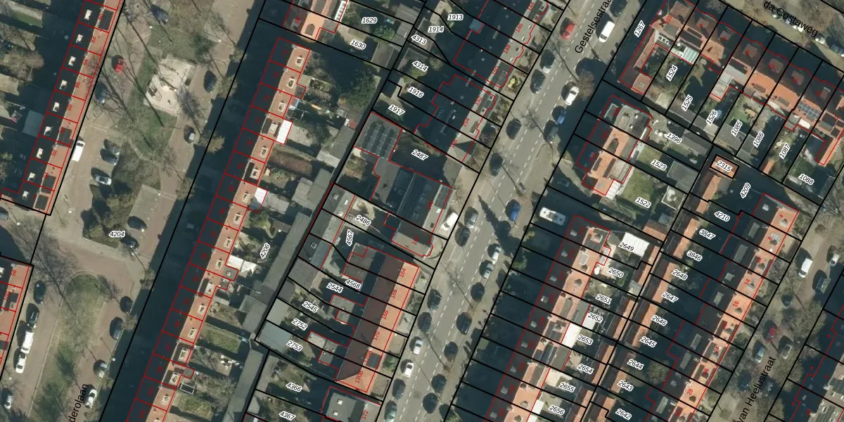 Gebruik de zoekbalk of klik op een perceel voor informatie over de adressen binnen dit perceel.